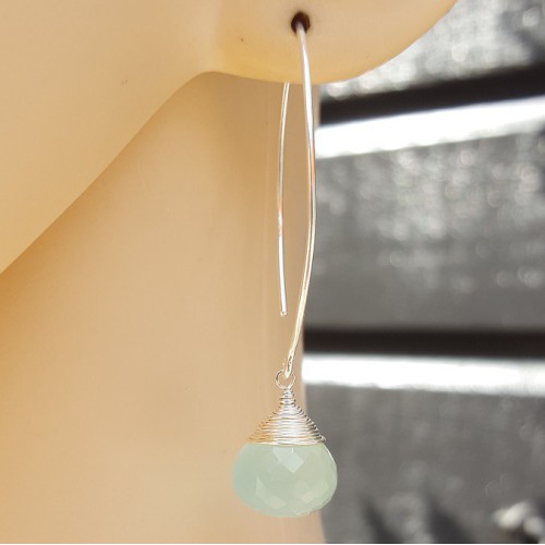 Mooie Sterling zilveren oorbellen met aqua Chalcedoon onion briolet.