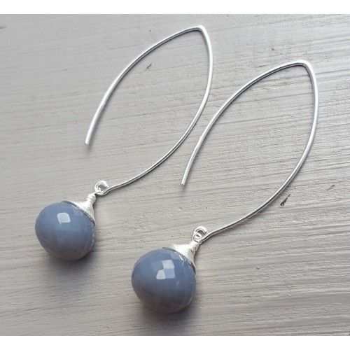 Mooie Sterling zilveren oorbellen met grijze Chalcedoon onion briolet.