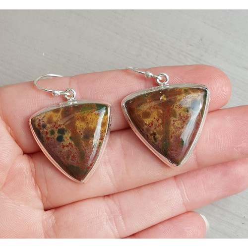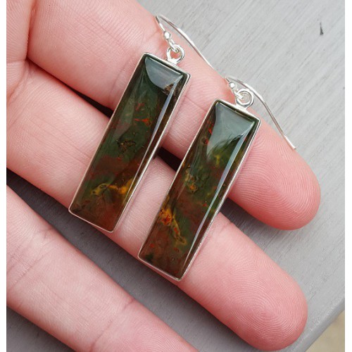 Mooie Sterling zilveren oorbellen gezet met Bloedsteen.