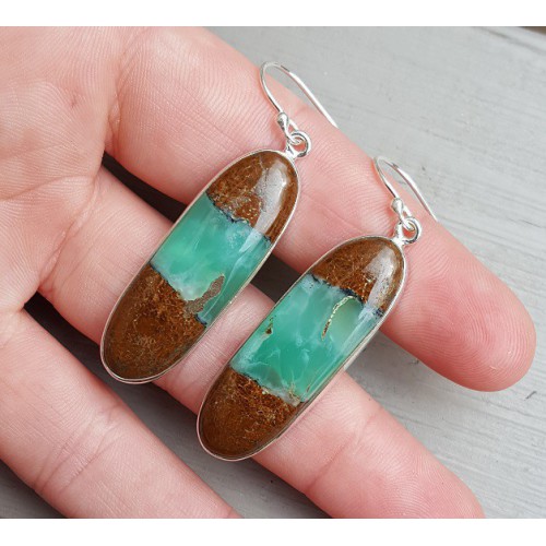 Mooie Sterling zilveren oorbellen gezet met Boulder Chrysopraas.