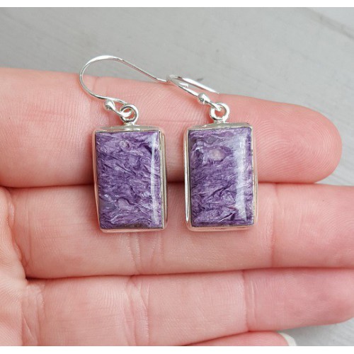 Mooie Sterling zilveren oorbellen gezet met Charoiet.