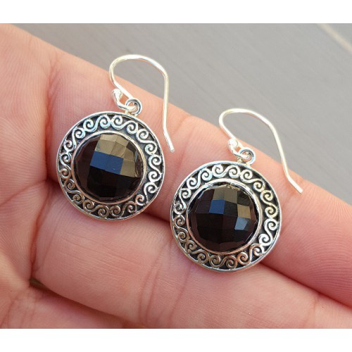 Mooie Sterling zilveren oorbellen gezet met zwarte Onyx.