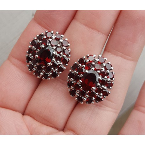 Mooie Sterling zilveren oorbellen gezet met Granaat.