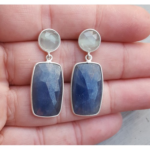 Mooie Sterling zilveren oorbellen gezet met Aquamarijn en Saffier.
