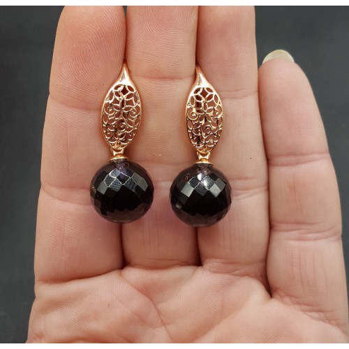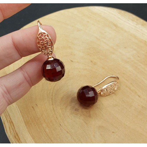 Mooie oorbellen met grote ronde Granaat quartz.