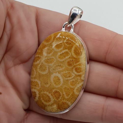 Mooie Sterling zilveren hanger gezet met Fossiel Koraal.