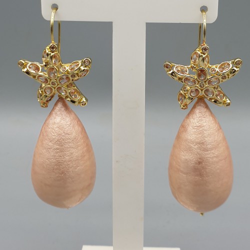 Vergulde (over messing) met zeester gezet met Crystal's en grote Katoen Parel.