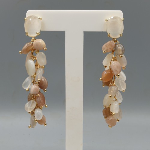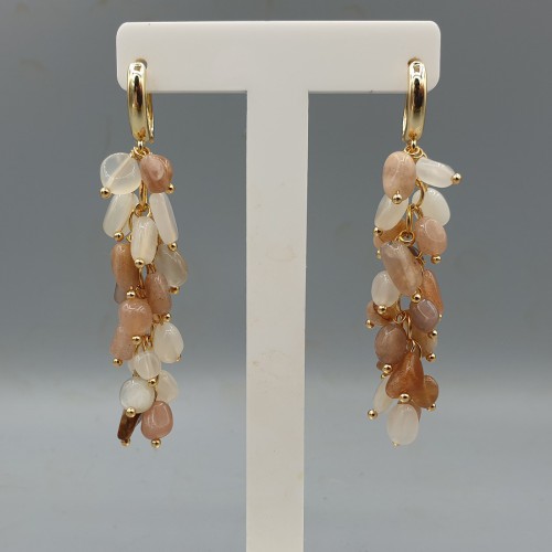 Vergulde (over messing) oorbellen met Maansteentjes.