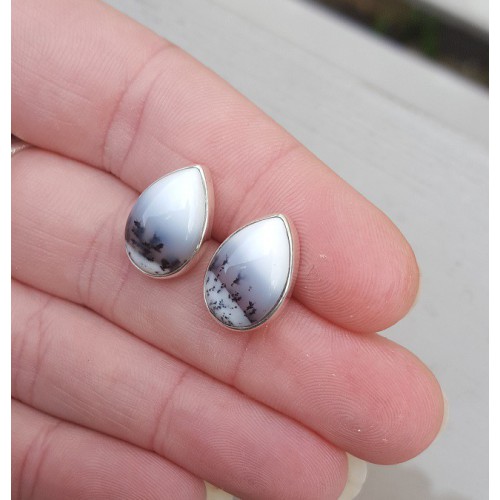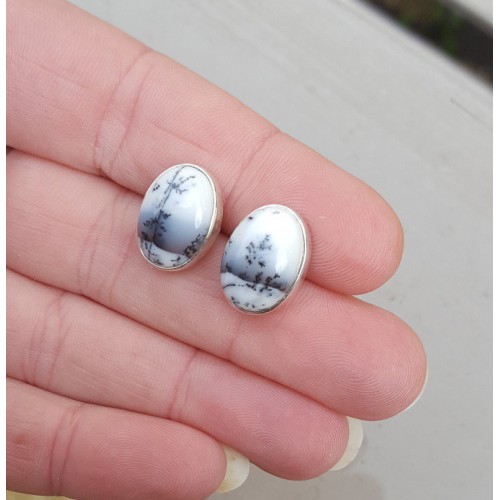 Mooie Sterling zilveren oorknoppen gezet met Dendriet Opaal.