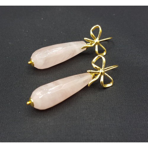 Mooie oorbellen met smalle Rozenkwarts briolet.
