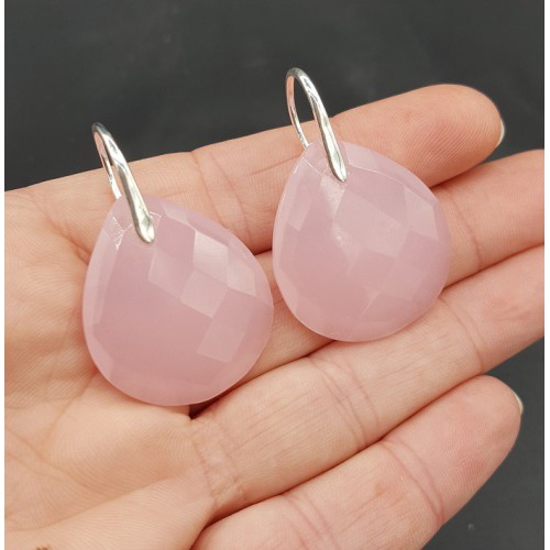Mooie Sterling zilveren oorbellen met roze Chalcedoon briolet.