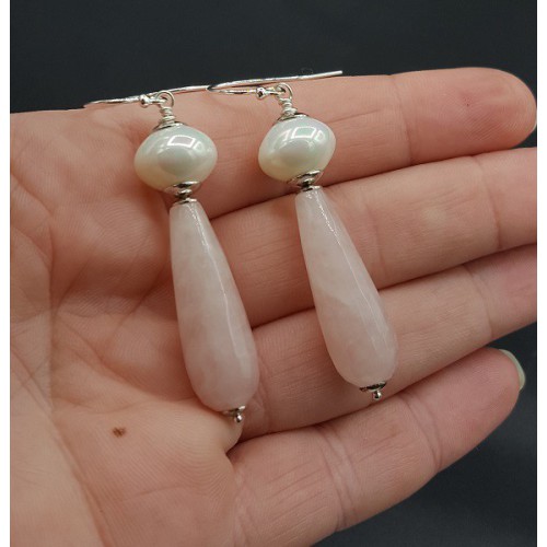 Mooie oorbellen met Rozenkwarts en schelp Parel.