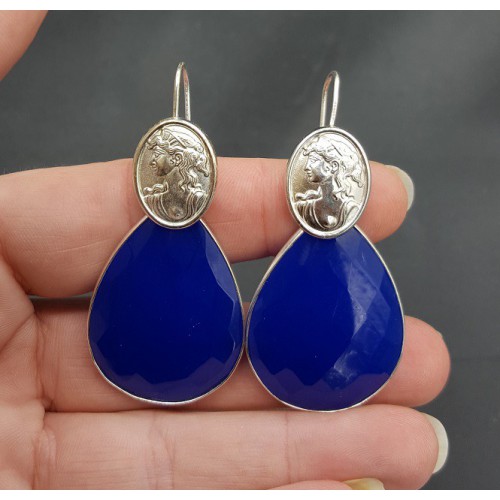 Mooie Sterling zilveren oorbellen met kobalt blauwe Chalcedoon.