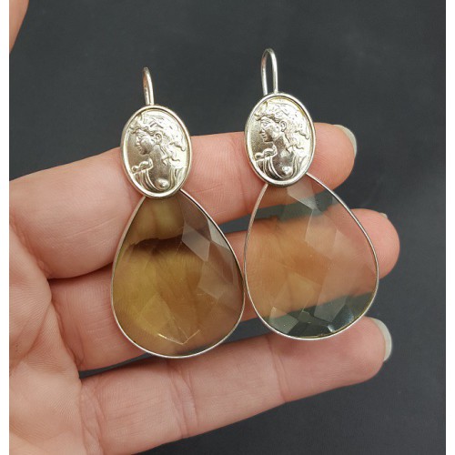 Mooie Sterling zilveren oorbellen gezet met Smokey Topaas, Granaat en Citrien.