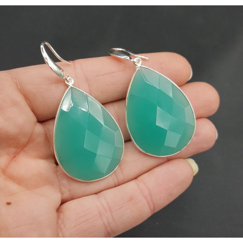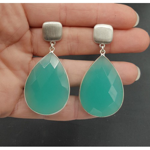 Mooie Sterling zilveren oorbellen met aqua Chalcedoon.