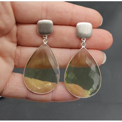 Mooie Sterling zilveren oorbellen met Emerald groene quartz briolet.