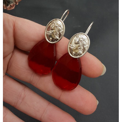 Mooie Sterling zilveren oorbellen met Granaat rode quartz briolet.