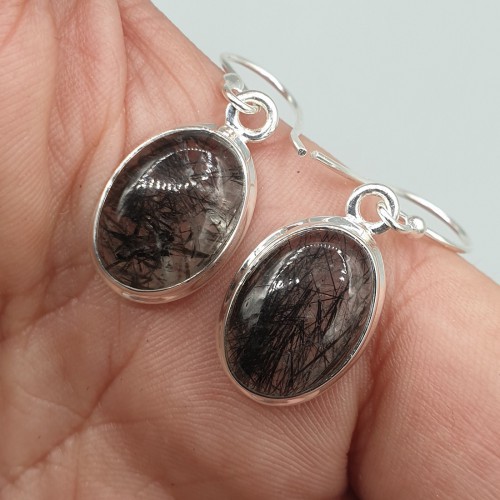 925 Sterling zilveren oorbellen met zwarte Rutielkwarts.