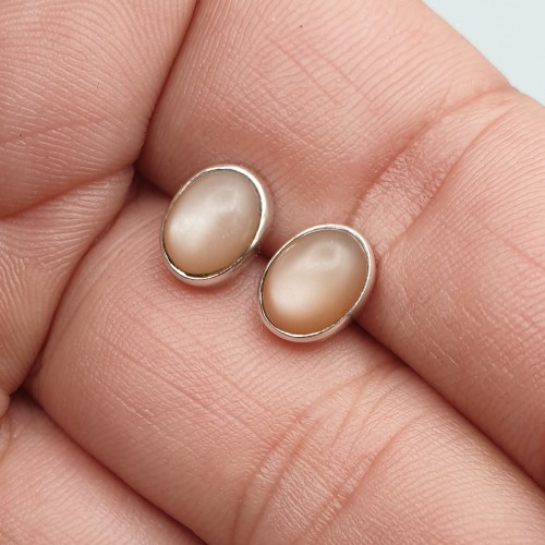 925 Sterling zilveren oorknoppen met perzik Maansteen.