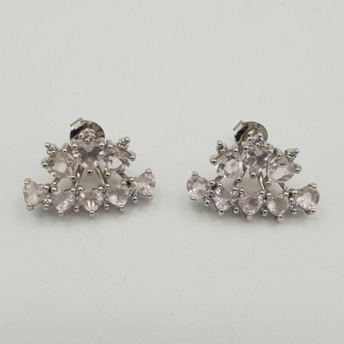 925 Sterling zilveren oorbellen gezet met Rozenkwarts.