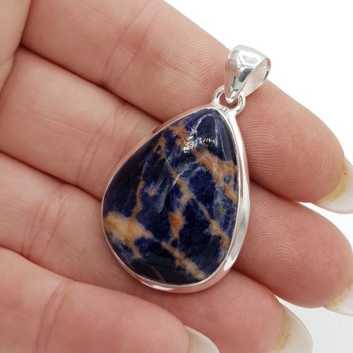 Mooie Sterling zilveren hanger gezet met oranje Sodaliet.