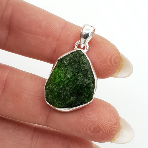 Mooie Sterling zilveren hanger gezet met ruwe Chroom Diopsiet.