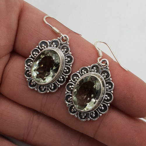 925 Sterling zilveren oorbellen gezet met groene Amethist.