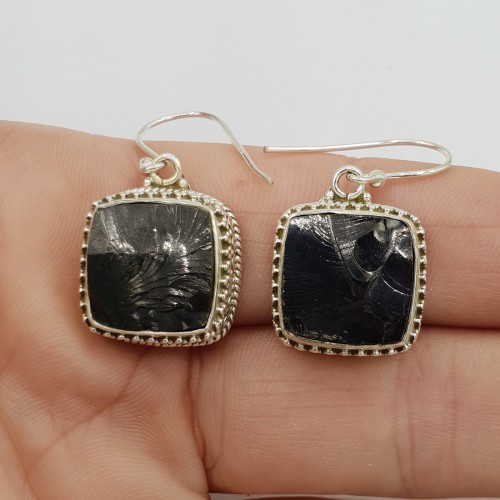 Mooie lange Sterling zilveren oorbellen met Shungiet.