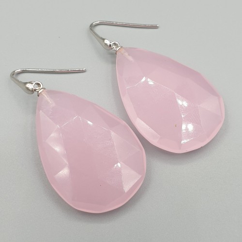 925 Sterling zilveren oorbellen met roze Chalcedoon.