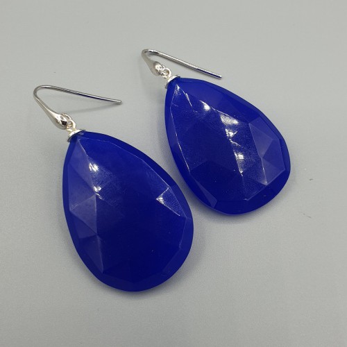 925 Sterling zilveren oorbellen met grote kobalt blauwe Chalcedoon.