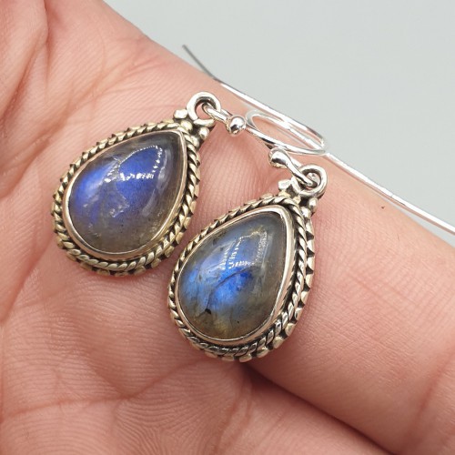 925 Sterling zilveren oorbellen gezet met Labradoriet.