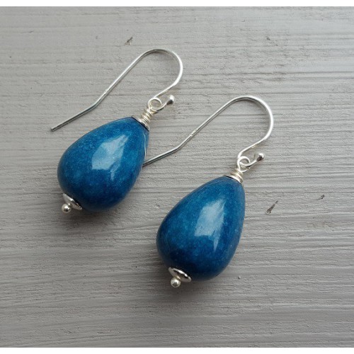 Mooie oorbellen met druppel van licht blauwe Jade (geen kristallen).