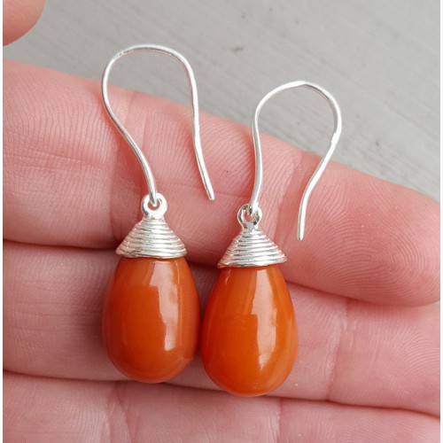 Mooie Sterling zilveren oorbellen met rode Onyx.