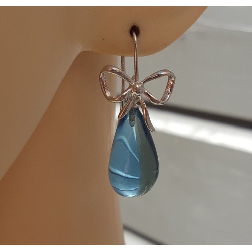 Mooie Sterling zilveren oorbellen met blauwe Topaas quartz.