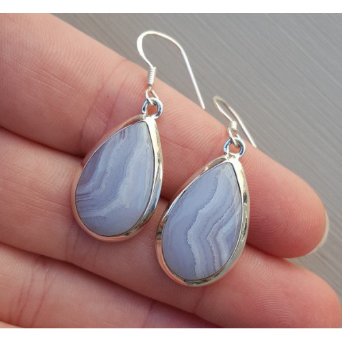 Mooie Sterling zilveren oorbellen gezet met blauw Lace Agaat.
