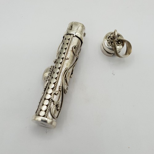 Deze zilveren parfumhanger / ashanger heeft een afmeting van 3.8 cm x 0.9 cm.
