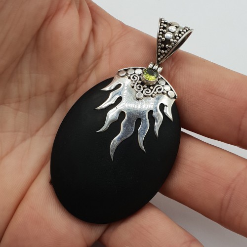 925 Sterling zilveren hanger met Lava steen en Peridot.