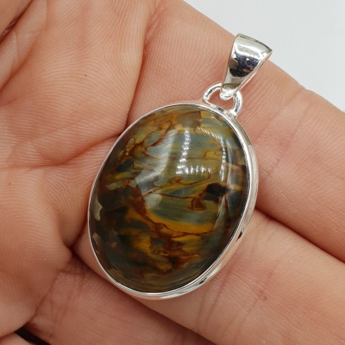 925 Sterling zilveren hanger gezet met Seam Agaat.