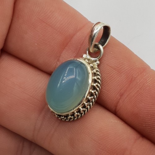 925 Sterling zilveren hanger gezet met aqua Chalcedoon.