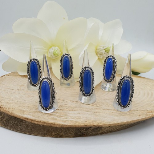 925 Sterling zilveren ring gezet met blauw Chalcedoon.