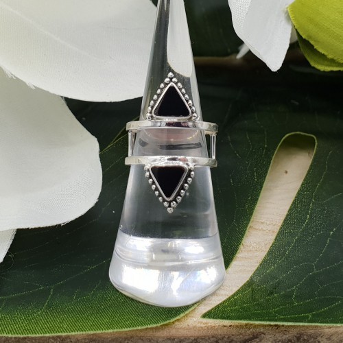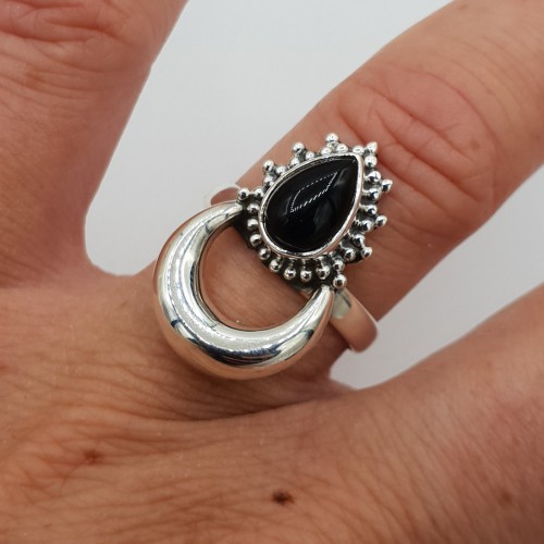 Mooie Sterling zilveren maan ring gezet met zwarte Onyx.