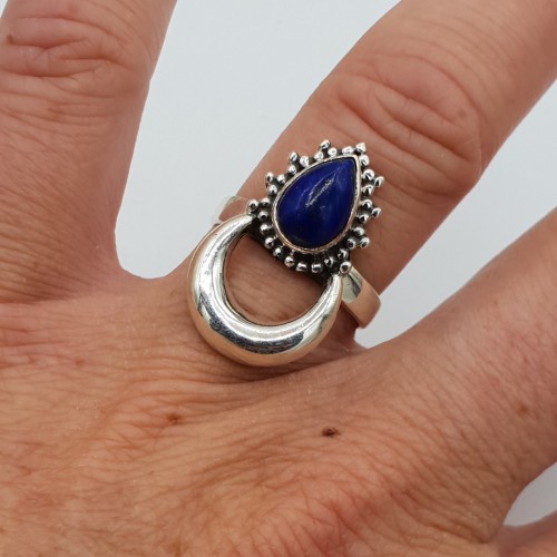 Mooie Sterling zilveren maan ring gezet met Lapis Lazuli.