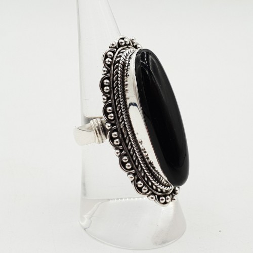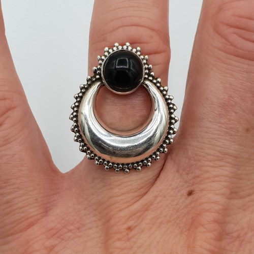 Mooie Sterling zilveren maan ring gezet met ronde cabochon geslepen zwarte Onyx.
