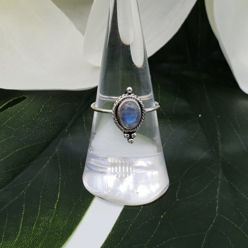 925 Sterling zilveren ring gezet met regenboog Maansteen.