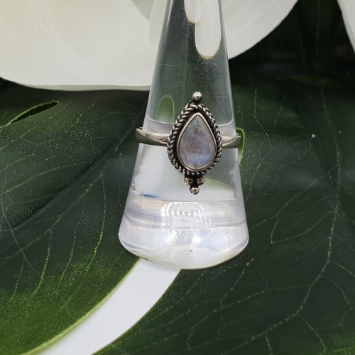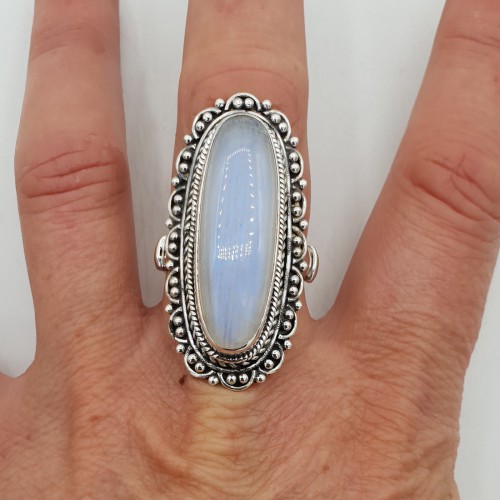 Mooie Sterling zilveren ring gezet met regenboog Maansteen.