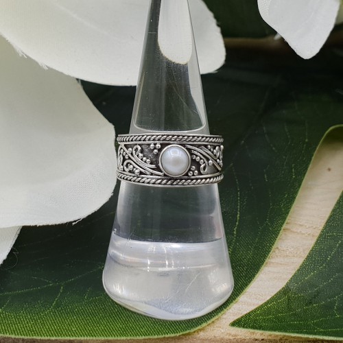 925 Sterling zilveren ring gezet met ronde Parelmoer.