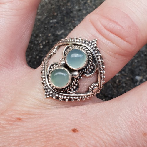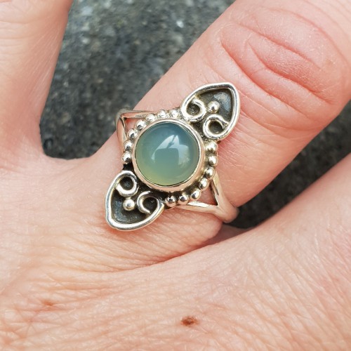Mooie Sterling zilveren ring gezet met aqua Chalcedoon.