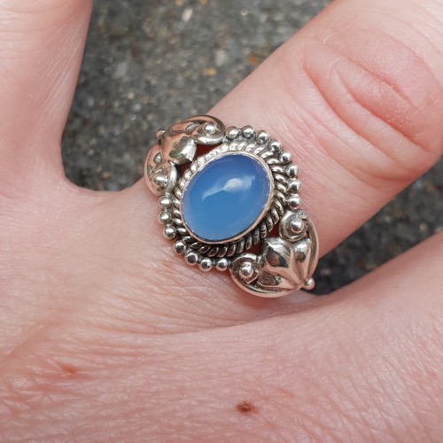 925 Sterling zilveren ring gezet met blauw Chalcedoon.