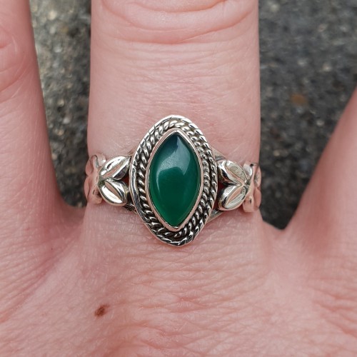 Mooie Sterling zilveren ring gezet met groene Onyx.