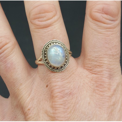 Mooie Sterling zilveren ring gezet met regenboog Maansteen.